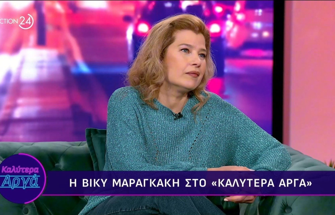 Τη Βίκυ Μαραγκάκη υποδέχθηκε η Αθηναΐς Νέγκα, το βράδυ της Πέμπτης, στο πλατό της εκπομπής «Καλύτερα αργά», η οποία προβλήθηκε από τη συχνότητα του Action 24.